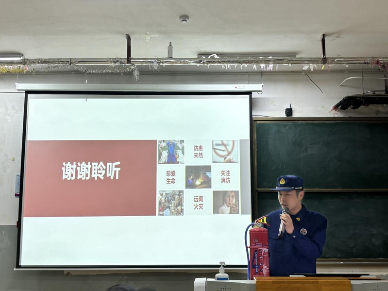 张艳用生动形象、通俗易懂的语言为师生讲解了在教室、宿舍、实验室如何避免火灾的发生及对突发情况的处理方法,并强调了火灾事故的突发性和破坏力。