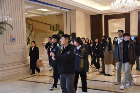 为精准把握人才需求,深化校企合作,促进毕业生高质量就业,同时,为了提高学生对旅游管理业认知水平,做好理论融入实践实现应用型人才培养目标。2024年3月7日,旅游管理系组织2023级订单班学生到济南舜耕山庄酒店和中国雪野湖国际会议中心开展访企拓岗和认知实习活动。永利yl23411官网党委副书记胡宪奎、旅游管理系党总支书记周宝玉、旅游管理系副主任冯春英及部分教师参加了此次活动。