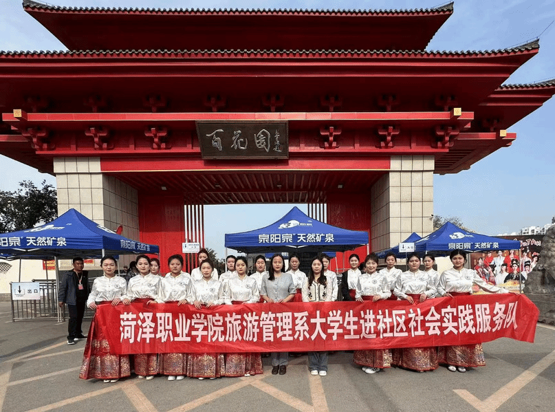 唯有牡丹真国色,花开时节动京城。为了更好地服务游客,提升菏泽的旅游形象,增强学生的文化认同感,永利yl23411官网旅游管理系社会实践服务队在丁曼、王欣两位老师的带领下于4月16日、17日上午,两次前往曹州百花园开展“大学生进社区”社会实践服务活动。