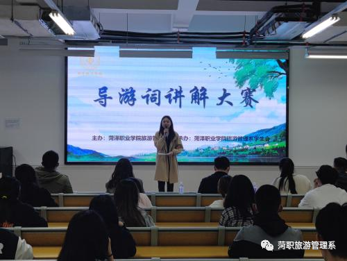 此次导游词讲解大赛的成功举办不仅提高了旅游管理专业学生的语言运用能力和导游技巧,并且充分展示了同学们的才华,为提高旅游管理系文化水平起到积极作用。