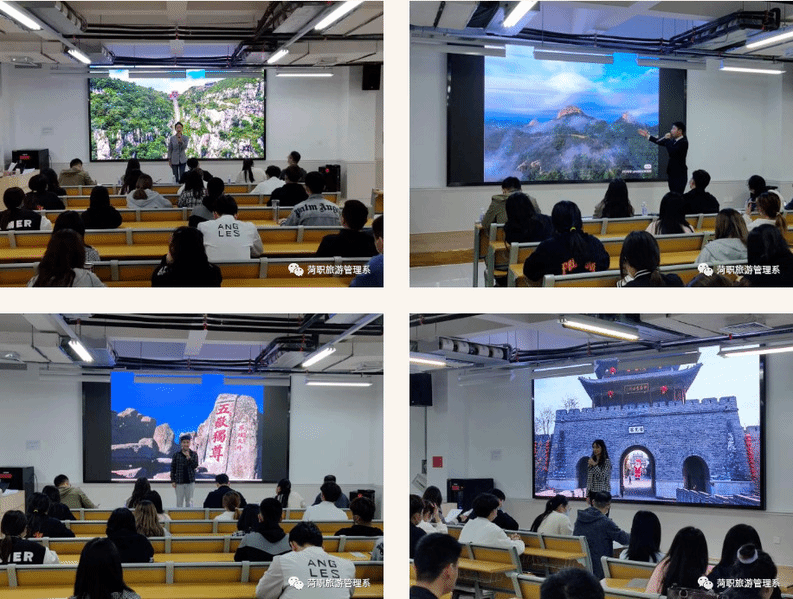 比赛现场,同学们选取了州关帝庙、故宫、沂蒙山、趵突泉、泰山等名胜古迹进行导游词讲解。比赛过程中,参赛选手们端庄、灵秀、神采飞扬、娓娓道来,他们风格各异,出类拔萃,给在场的评委和观众们带来了一场视听盛宴。