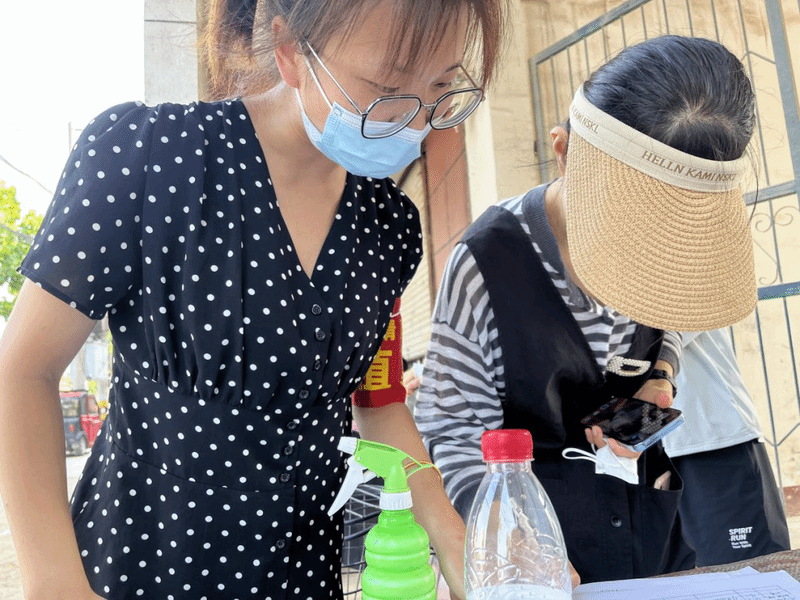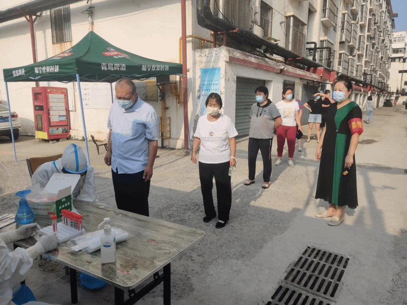 作为旅游管理系年龄最大的教师党员,59岁的于琳华老师身先士卒。在北城街道八一社区三益小区,结合统一调遣和安排,动员所有居民进行核酸检测,主要负责维持核酸检测秩序,并积极协助配合社区开展宣传引导工作。