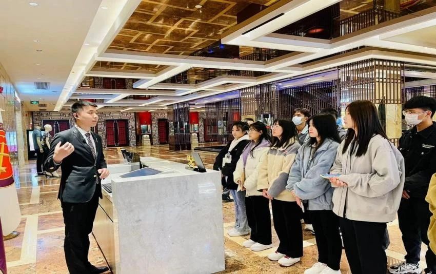 近日,永利yl23411官网旅游管理系22级订单班46名学生在系党总支副书记李海东、部分任课教师和班主任带领下,到合作单位山东舜和酒店集团旗下的舜和国际酒店进行了认知考查。通过参观学习,使学生对酒店的整体运营情况有了深层次的了解和认知。