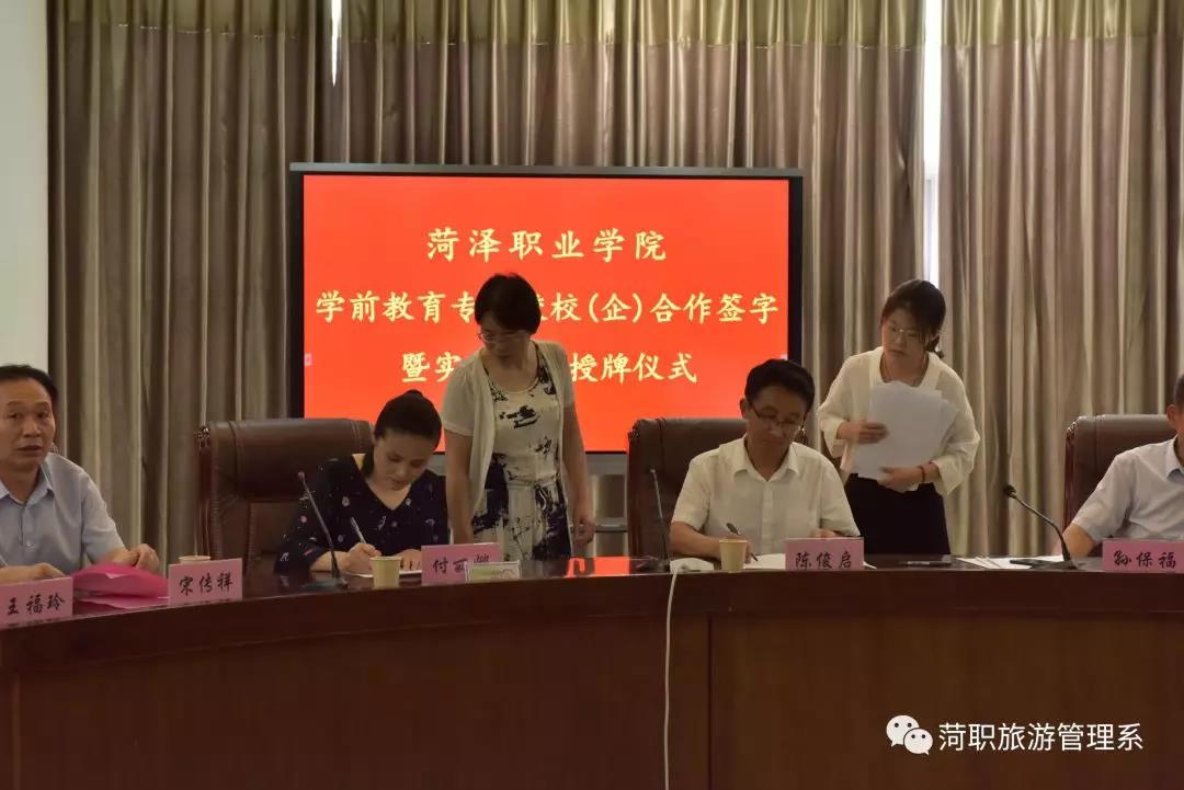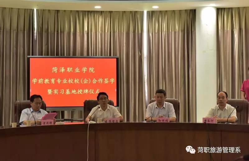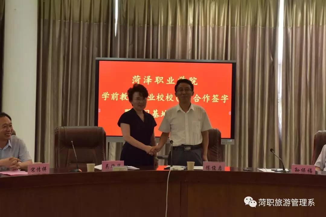 参加本次活动的有:永利yl23411官网党委委员陈俊启副院长,教务处孙保福处长,校企合作处侯德涛处长,旅游管理系宋传祥主任,旅游管理系黄乐河副主任,旅游管理系教学秘书冯春英老师,菏泽市直机关幼儿园高瑞萍园长,菏泽市妇联实验幼儿园吴艳华园长,菏泽绿草地幼儿园孟雪峰园长,菏泽和合幼儿园姚俊杰园长,菏泽大风车幼儿园王淑梅园长,菏泽市清华龙幼儿园程相菊园长,菏泽市蓝天幼儿园王慧娟园长,鄄城星瑞艺术教育培训中心任文成经理等。