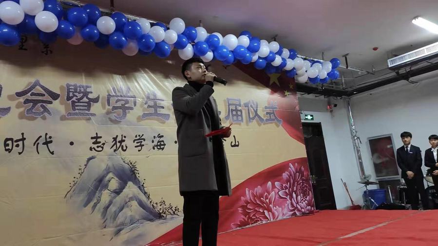 上届学生会主席苗昊发言:在他的言语中,我们感受到了沉甸甸的热爱和真真切切的付出,以及对学生会的恋恋不舍和对领导老师的感恩之情。