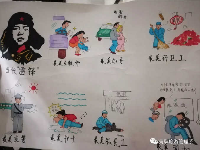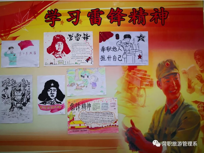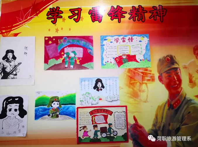 三月是学雷锋月。我系在宋传祥主任的领导下,各个班级都积极响应向雷锋同志学习的号召! 于3月12日至3月28日开展了系列活动之一——“班级走廊文化墙”活动。同学们利用课余时间进行各班级和系内楼道的装饰,号召大家学习雷锋精神。