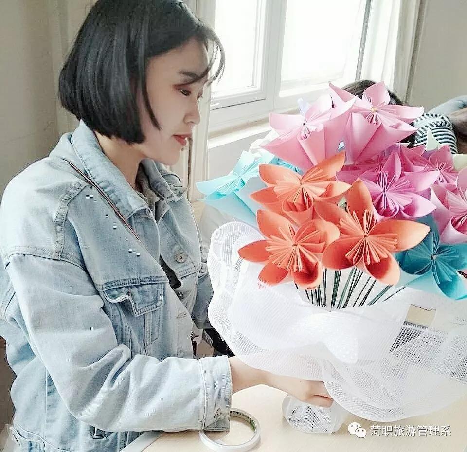 花,是美丽的,是圣洁的,是柔和的。因为有了彩色的花朵,我们的世界才会变得如此多姿多彩。同学们正用手中的彩色卡纸折出她们心中的花海。同学们的其他作品也栩栩如生。