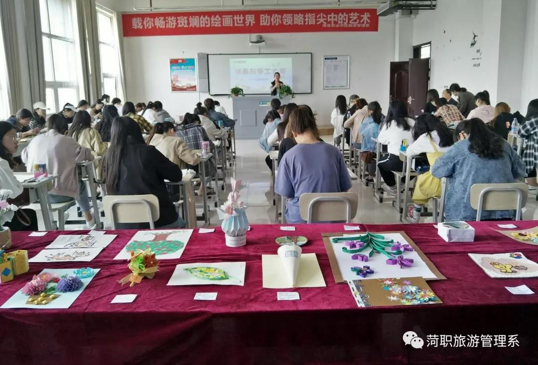自2015年起每年5月的第二个周是全国“职业教育活动周”本次全国职业教育活动周主题为“迎中华人民共和国成立七十周年展职教时代风采”。 其目的是弘扬劳动光荣、技能宝贵、创造伟大的时代风尚,形成“崇尚一技之长、不唯学历凭能力”的良好氛围。旅游管理系积极响应号召,于5月9日上午在十号楼S413教室举行绘画手工比赛。我系音乐表演专业(学前教育方向)共有49名同学参赛。