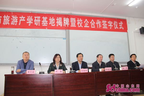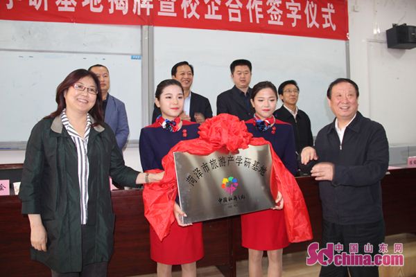 永利yl23411官网党委书记乔廷龙与菏泽市旅游局局长邓露为“菏泽市旅游产学研基地”揭牌