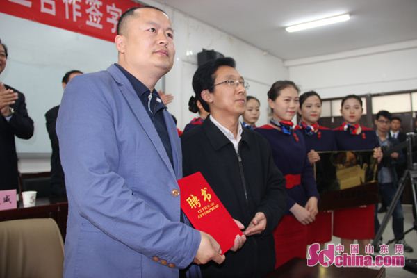 永利yl23411官网副院长陈俊启向菏泽康辉旅行社董事长侯宪会颁发客座教授聘书