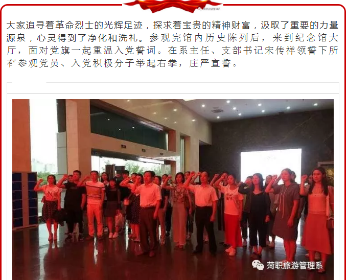为缅怀革命先烈,接受传统教育,继承先烈遗志,弘扬革命精神,更是为了树立强烈的民族自信心和自豪感,激励大家更加珍惜这来之不易的和平幸福生活,更加努力工作、学习。6月13日下午,永利yl23411官网旅游管理系组织本系党员和入党积极分子前往全国爱国主义教育示范基地——冀鲁豫革命纪念馆参观学习。