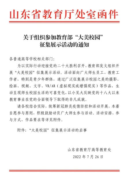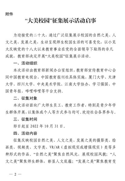 关于组织参加教育部“大美校园”征集展示活动的通知