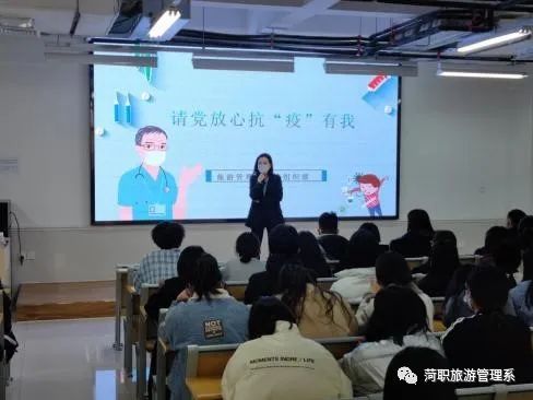 2022年3月22日旅游管理系于职教园区2-3阶梯教室开展了,“抗疫有我”主题团课。让我们与党同行,抗疫有我。