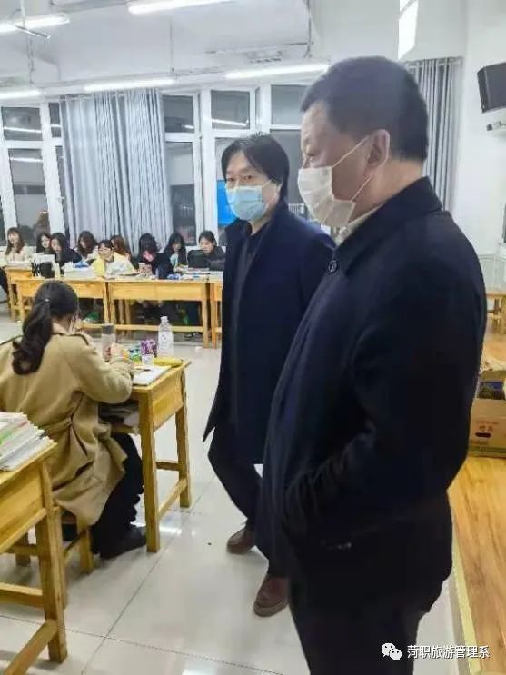 旅游管理系党总支书记周宝玉和旅游管理系党支部副书记李海东到各个班级参观同学的精彩表演,给予了同学们很大的鼓励和支持。