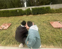 “翠柏青松永相伴,深情缅怀寄哀思。”进入烈士陵园,同学们缓步绕行瞻仰烈士墓,进行祭扫活动。一块墓碑,一串印记,诠释着一份沉甸甸的责任。大家俯身于烈士墓碑前,怀着崇敬的心情,认真擦拭墓碑并献上鲜花。所有人神情肃穆,以默哀缅怀着革命先烈的英雄事迹,寄托我们的哀思和敬意,祭奠我们民族之脊梁,华夏之精英,人民之忠魂。