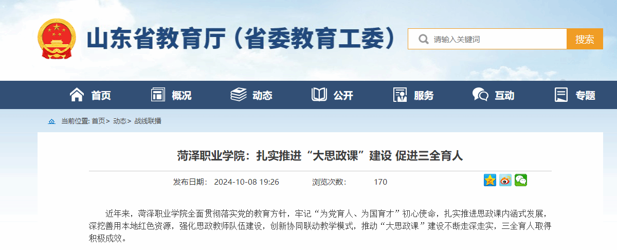 学院以思政课建设内涵式发展为抓手,全力构建马克思主义教学体系,以政治认同、家国情怀、道德修养、法治意识、文化素养为重点,充分调动全校力量和资源,推动各类课程与思政课同向同行,全面提升学生思想政治理论素养,实现知、情、意、行的统一。坚持上好党史、新中国史、改革开放史、社会主义发展史等课程,把加强历史教育和思政课建设结合起来,以对历史知识的系统性学习为基点,通过主题电影课、专题讲座、研讨、辩论等多种形式,讲清楚中国共产党百余年奋斗的光辉历程,教育引导学生知史爱党、知史爱国,激发起自觉担当民族复兴重任的信心和决心。注重以文化人、以文育人,依托学校大学科技园万花湖美术馆、非遗传承馆、故宫牡丹创意展、非遗大师工作室等文化项目,深挖中华优秀传统文化资源,以中华文明独特的文化基因和精神标识,涵养学生爱党爱国爱社会主义的情怀。学校的思政课教学水平持续提升,获批菏泽市首批“大思政课”实践教育基地,加入菏泽市大中小学思政课一体化建设共同体,积极承担全市“大中小学思政课一体化建设”专题培训、大中小学思政教师集体备课和教学展示、“思政金课”优质课例资源遴选等系列活动任务,获评2024年菏泽市百节思政“金课”一等奖等多个奖项。