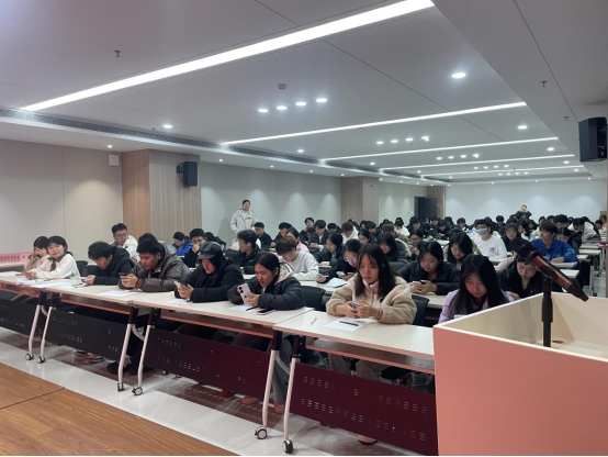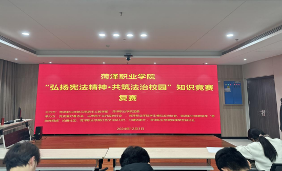 马克思主义教学部于一周前便开启“弘扬宪法精神·共筑法治校园”知识竞赛初赛海选。经过各系部初赛的激烈角逐,2024 年 12 月 3 日晚 19:00脱颖而出的优秀学子齐聚于新图书大楼 903 室,展开了一场精彩纷呈的宪法知识“对决”。