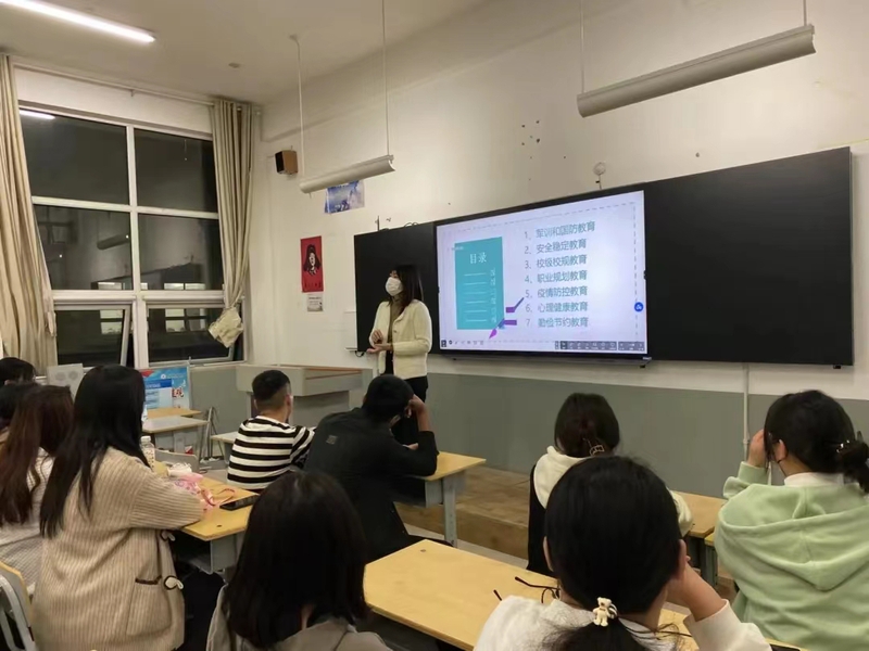 为贯彻落实学院各项学生管理制度和校园疫情防控政策,引导2022级全体新生增强防范意识、纪律意识,树立正确的价值观,使学生更快适应大学生活。商贸物流系于10月25日召开了2022级新生班会暨教官见面会。