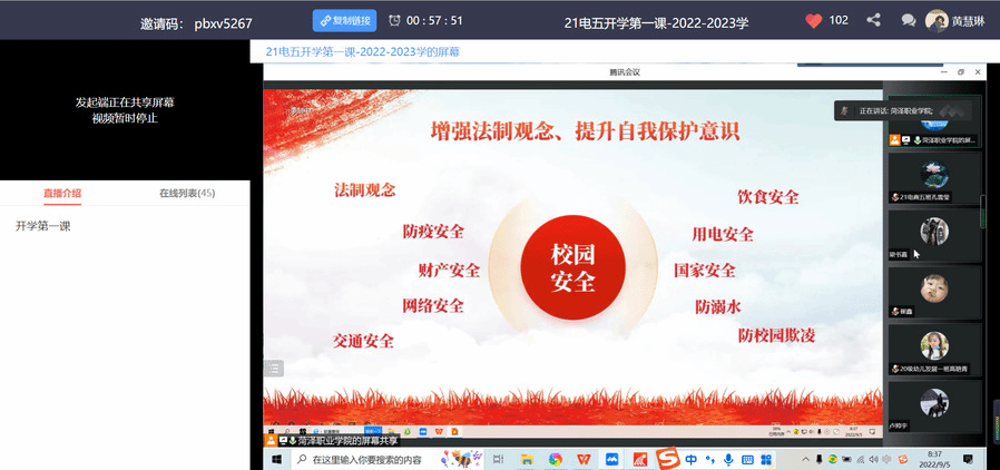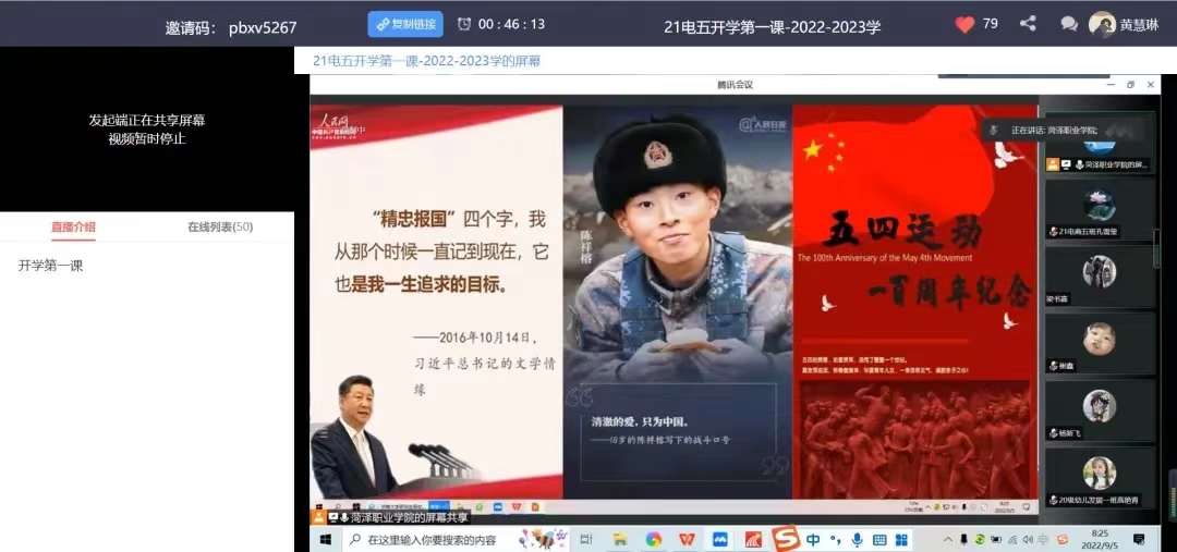 为切实做好2022年秋季学期相关工作,进一步提高学生疫情防控意识和安全意识,促进新学期各项工作安全有序开展,营造良好的开端,激发学生的学习热情,以优异的成绩迎接党的二十大胜利召开,9月5日商贸物流系通过线上的形式开展“喜迎二十大,永远跟党走,奋进新征程”“开学第一课”主题班会等活动。
