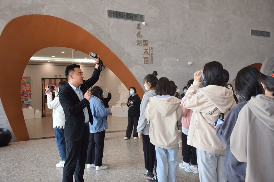 参观过程中,讲解员为前来参观的同学们进行了详细的讲解。同学们认真倾听,仔细欣赏馆内的藏品,沉浸式、全方位、多角度地感受文化的魅力。在讲解员的解说中我们可以了解到科技园各个展厅依据不同主题采用多样化设计,均以文化作为展示的重点。通过简洁典雅的展厅,既能突出艺术作品的独到魅力,又兼具新颖的现代气息,使之将历史与艺术,传统与现代有机的结合在一起。