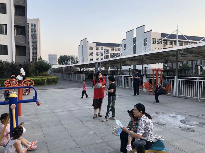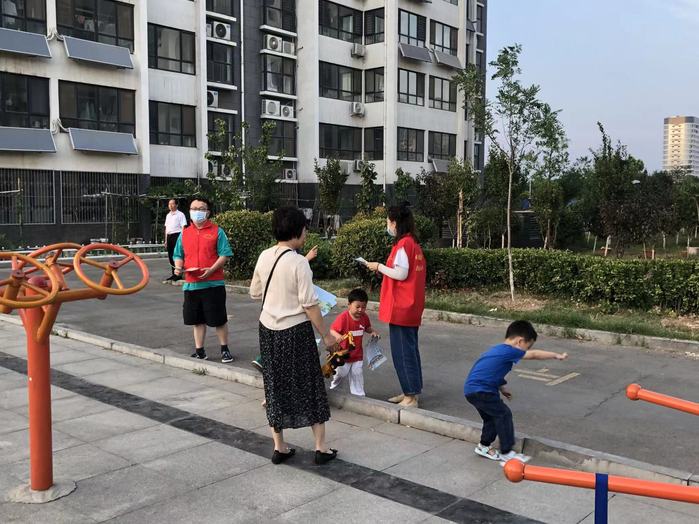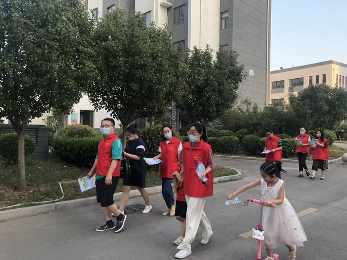 此外学生志愿者们也积极向党员教师靠拢,投身社区宣传工作,学习志愿服务精神,贡献青春的力量。