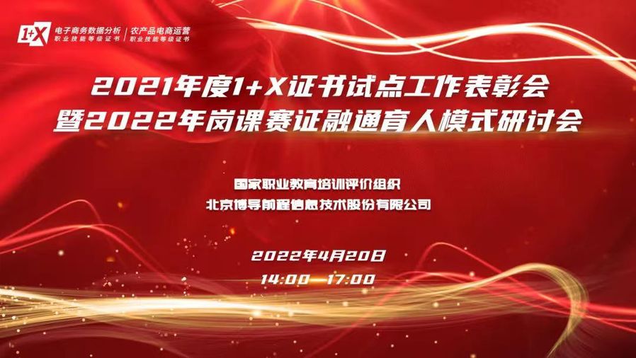 4月20日,2021年度电子商务数据分析、农产品电商运营1+X证书试点工作表彰会暨2022年岗课赛证融通育人模式研讨会在线上成功召开。会上表彰了2021年度试点工作先进单位、先进个人、优秀案例等。我院喜获2021年度“1+X”电子商务数据分析职业技能等级证书“优秀试点院校”和“优秀考核站点”两项团体荣誉,商贸物流系仇振、黄亚涛、马小波三名教师获得“优秀指导教师”荣誉称号,其中黄亚涛老师被评为“优秀考务管理员”。