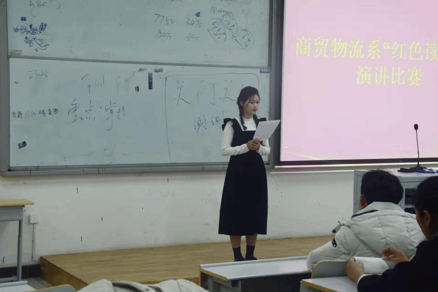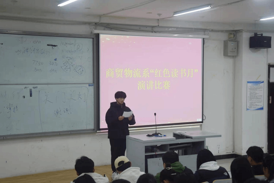 为了进一步丰富校园文化建设,培养大学生的爱国主义情怀,发扬红色经典中的伟大精神,使同学们坚定理想信念,树立正确的人生观、价值观和世界观。商贸物流系于11月27日下午举办了以“读红色经典书籍•树崇高理想信念”为主题的演讲比赛。此次比赛的评委由学生会主席团担任。