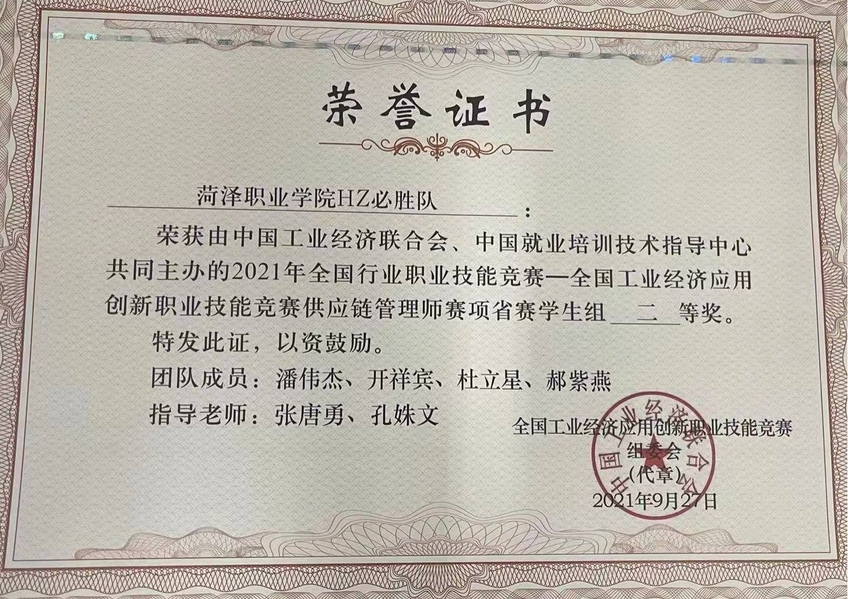 9月27日,由中国工业经济联合会、中国就业培训技术指导中心主办,中国物流与采购联合会承办的2021年全国行业职业技能竞赛全国工业经济应用创新职业技能竞赛供应链管理师赛项省赛落下帷幕。本次竞赛为国家二类竞赛,经过层层选拔,商贸物流系参赛队伍分别荣获职工组一等奖1项,二等奖2项,学生组二等奖1项。