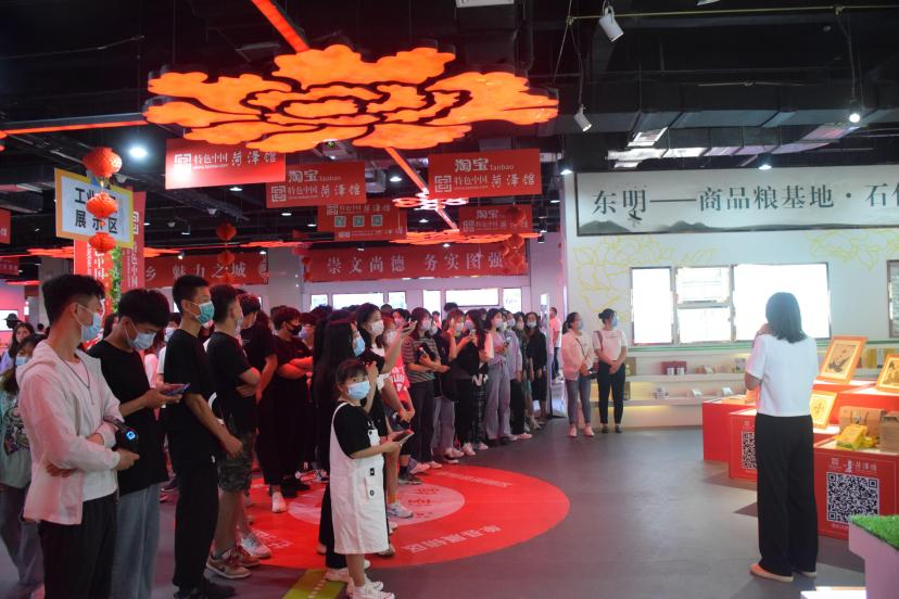 首先同学们来到了天华服务大厅仔细听取了物流园区的规划建设以及菏泽县区的文化传统和本地特产的介绍,天华物流园区已经形成了集网商创业孵化、众创空间、电子商务、新媒体广告、线下体验、仓储物流、分拨配送及综合配套为一体的全功能、全要素电商物流产业园区。