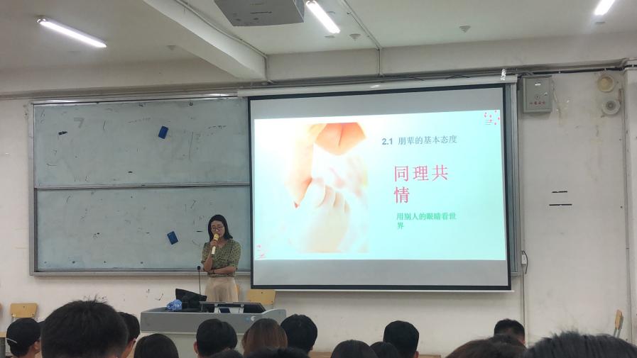 杨老师从情绪调节的概念和技巧入题,通过讲故事、摆道理,阐述了日常生活中所遇到的心理问题,讲解了人际交流中如何换位思考、如何管理情绪等方法和技巧,使同学们对如何认识自己和如何保持身心健康有了更进一步的理解。