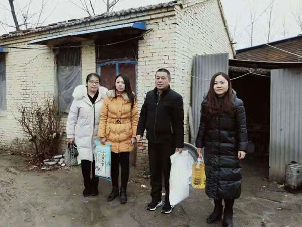 董茂常主任、楚晓娟老师和邵伟老师对贫困生家庭进行了家庭慰问也代表商贸物理系送去了慰问品。