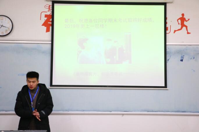 2018年1月3日,我系学习部成员以播放ppt的形式为各个班级科普冲刺期末的知识。