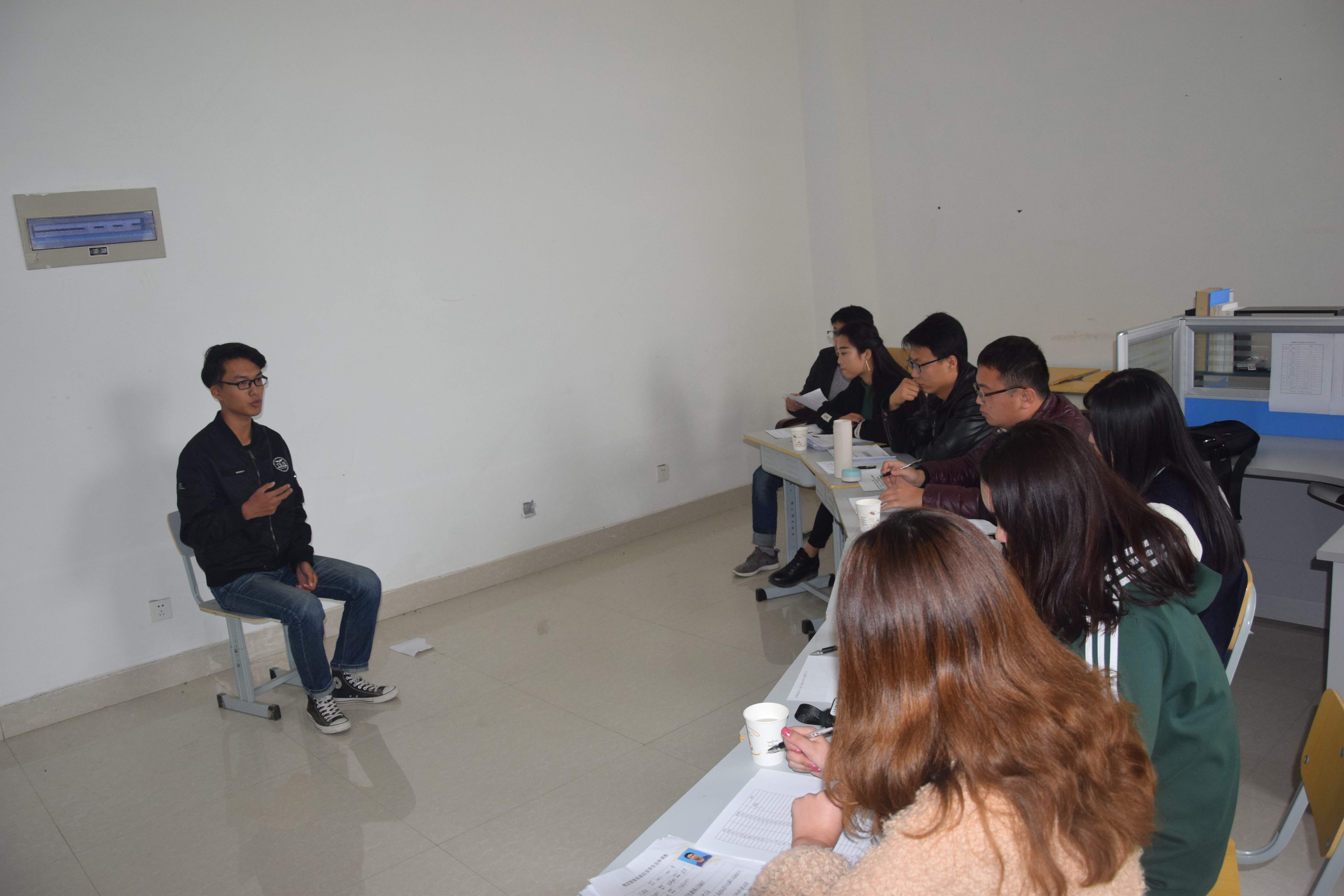 17级学弟学妹在教室认真准备物流管理系团总支学生会最后一轮复试