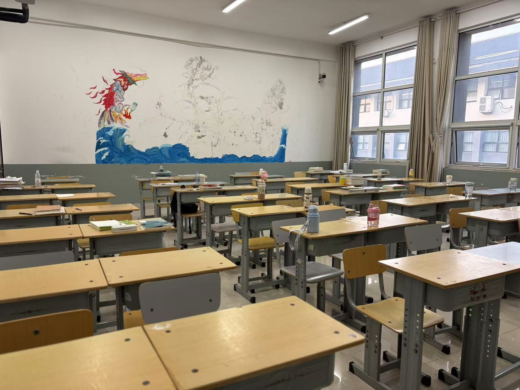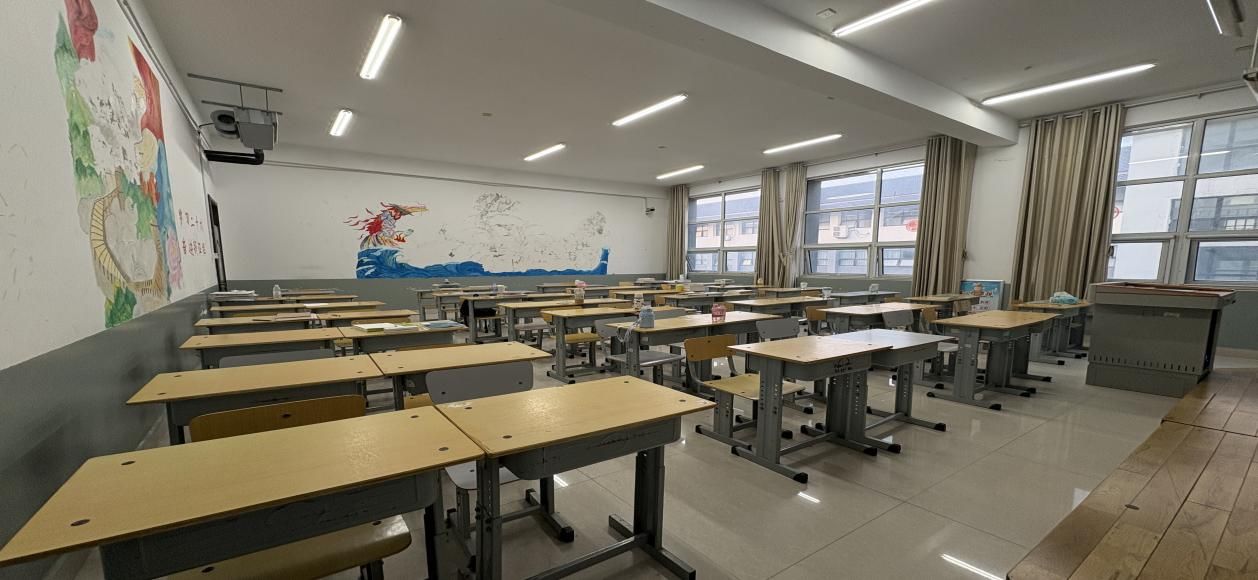 走进教室,窗明几净,阳光洒落。桌面整齐无杂物,地面光洁映人影。黑板如镜,讲台有序,绿植盎然。墙壁净白,桌椅规整,卫生角整洁不杂乱。这整洁背后,是班级齐心。