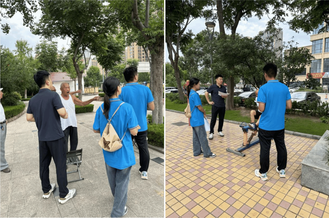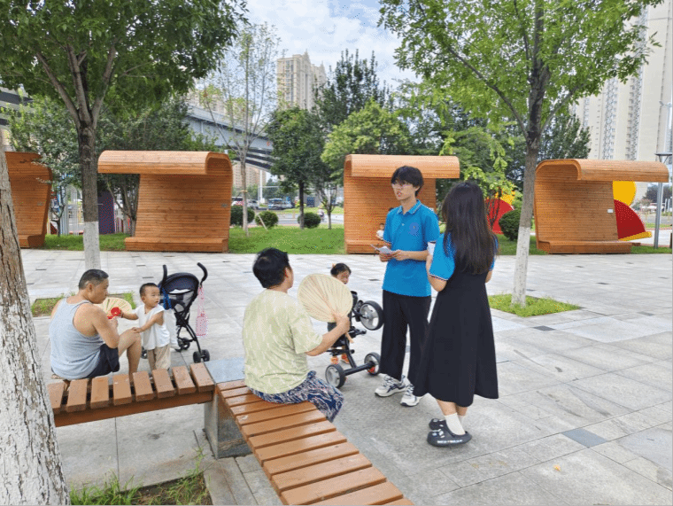 在本次实践活动中,团队成员重点考察了公园的位置、建成年份、面积、配套设施、相关文化历史背景、市民对公园环境、设施和景观的满意度等内容。口袋公园的设计往往精致小巧,绿化丰富,受到市民的喜爱。师生们在调研走访中了解到,市民对近年来政府新建的口袋公园及周边环境普遍表示满意,认为它们为城市增添了绿色,提供了清新的空气和宁静的休闲空间。口袋公园内的座椅、健身器材、儿童娱乐设施等为市民提供了多样化的休闲选择,满足了不同年龄段的需求,受到市民们的好评。
