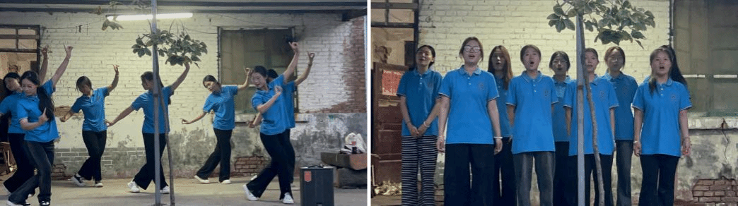 学习和实践,体验与锻炼,有理论上的成长,也需要现实磨炼的提升。近年来,永利官网高度重视大学生课余实践锻炼,组建了60个不同类别的校级大学生社团,为学生培养兴趣爱好,彰显个性特长提供了丰富舞台。7月12日,在乡村彩绘进入收尾的傍晚时分,永利官网优秀大学生社团代表——彩虹合唱团的师生们为村民献上了一场别开生面的夏日文艺演出。为了给群众带来欢乐和微笑,社团指导老师桑崇振事先精心编写了适合群众的《山东快书》、小合唱《喀秋莎》、以及舞蹈《左手指月》等精彩节目。没有高大上的灯光音响,村内简陋的凉棚就是师生施展才华的舞台,老师和同学们精神抖擞、轮番登场,激昂的快书、悠扬的歌曲、欢快的舞蹈,引得周围群众阵阵掌声,精彩表演给村民留下了深刻印象,整场文艺演出取得了良好反响。