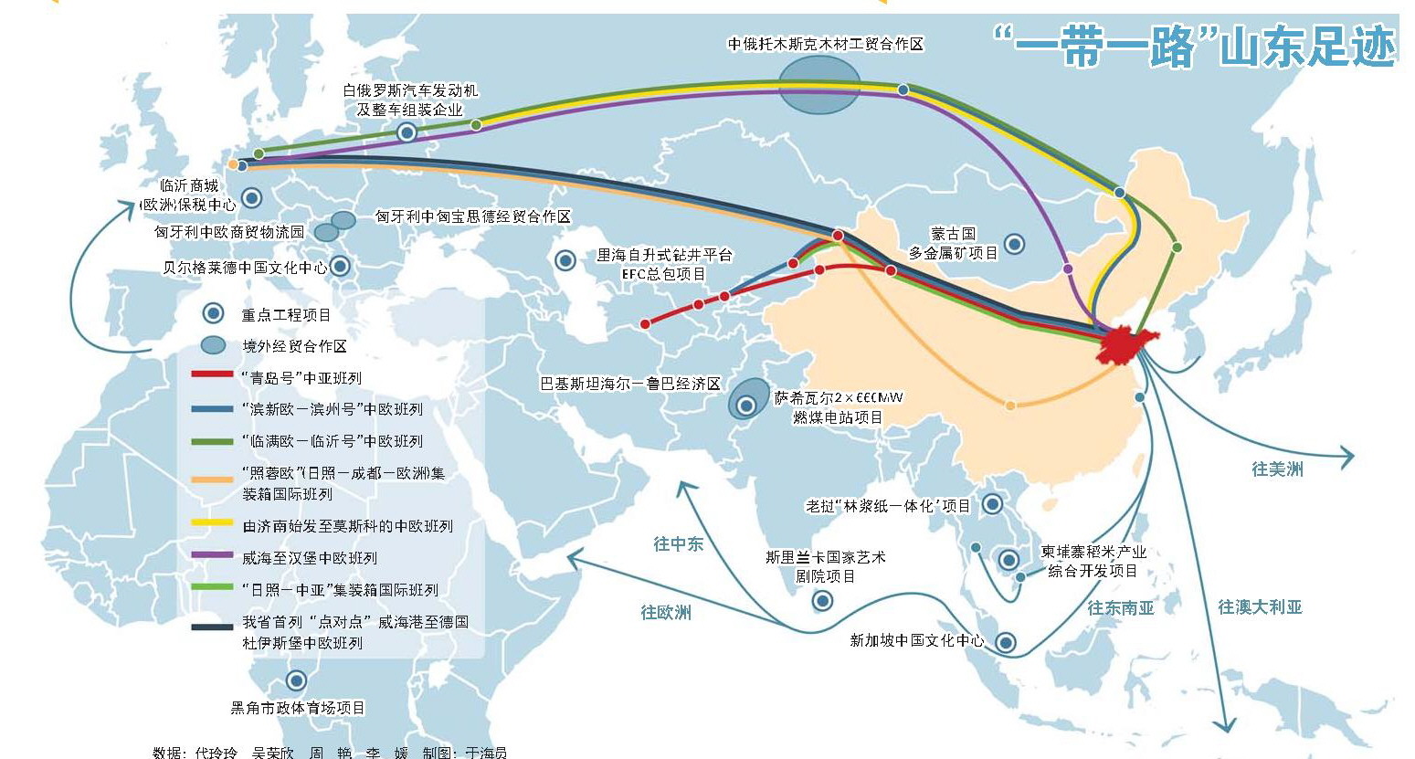 面对“一带一路”带来的新发展机遇,临沂商人刘龙举发出了“老一代闯关东,新时代闯中东”的感慨。着眼“一带一路”,我省已出台措施,推动在国际产能合作、建设高水平合作项目、推进海洋经济合作发展上实现新突破,支持青岛、烟台打造海上合作战略支点,日照建设中亚航贸服务中心,威海打造中韩物流枢纽;将拓展与中东欧国家合作,加强东亚海洋合作平台、东亚畜牧产品交易平台建设。