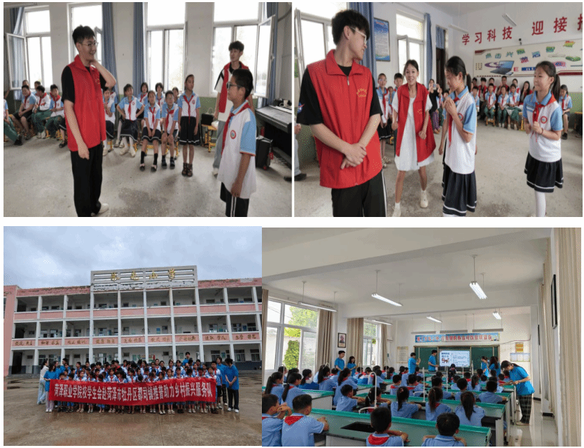 今年以来,永利官网团委加大了组织大学生走进城乡小学工作力度,实地体验菏泽城乡教育发展成效。在东城街道花城小学,永利官网师生参加了“牡丹诗词公益培训暨百万大学生进东城街道花城小学社会实践宣讲活动”。在牡丹区第八小学,永利官网师生开展了“守护菏苗·070勇敢者行动”实践活动。在南城侯店小学,永利官网师生组织了包括“青蛙王子吹皮球”欢快竞赛、“123木头人”等一系列妙趣横生的活动。在都司镇朱屯小学,利用暑期“三下乡”实践,组织校学生会学生代表深入小学课堂,为小学生讲解普通话等知识,开展防溺水、防诈骗宣传活动。