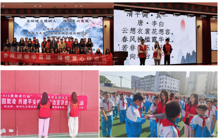为积极响应团省委、团市委“百万大学生进社区”部署要求,切实提升共青团实践育人质量,今年以来永利官网团委将志愿服务融入基层社会治理,在服务人民群众中展现新时代青年价值,传递青年力量,形成了“花开盛世、生进万佳”大学生进社区品牌,聚焦社区、村居、企业、学校以及机关事业单位等实践场所,组织实践、学习观察、开展服务,为社区及城市发展注入青春动能。