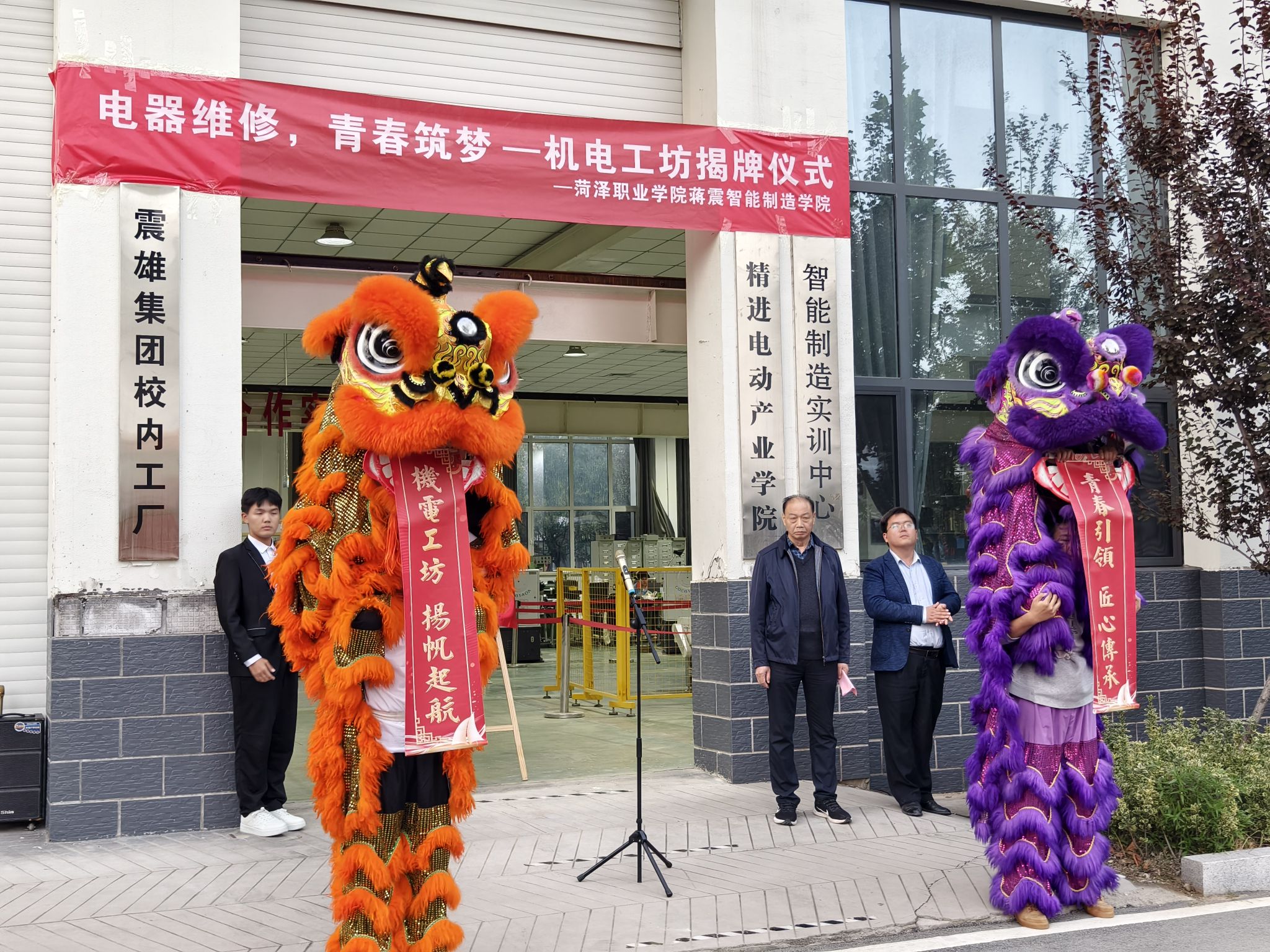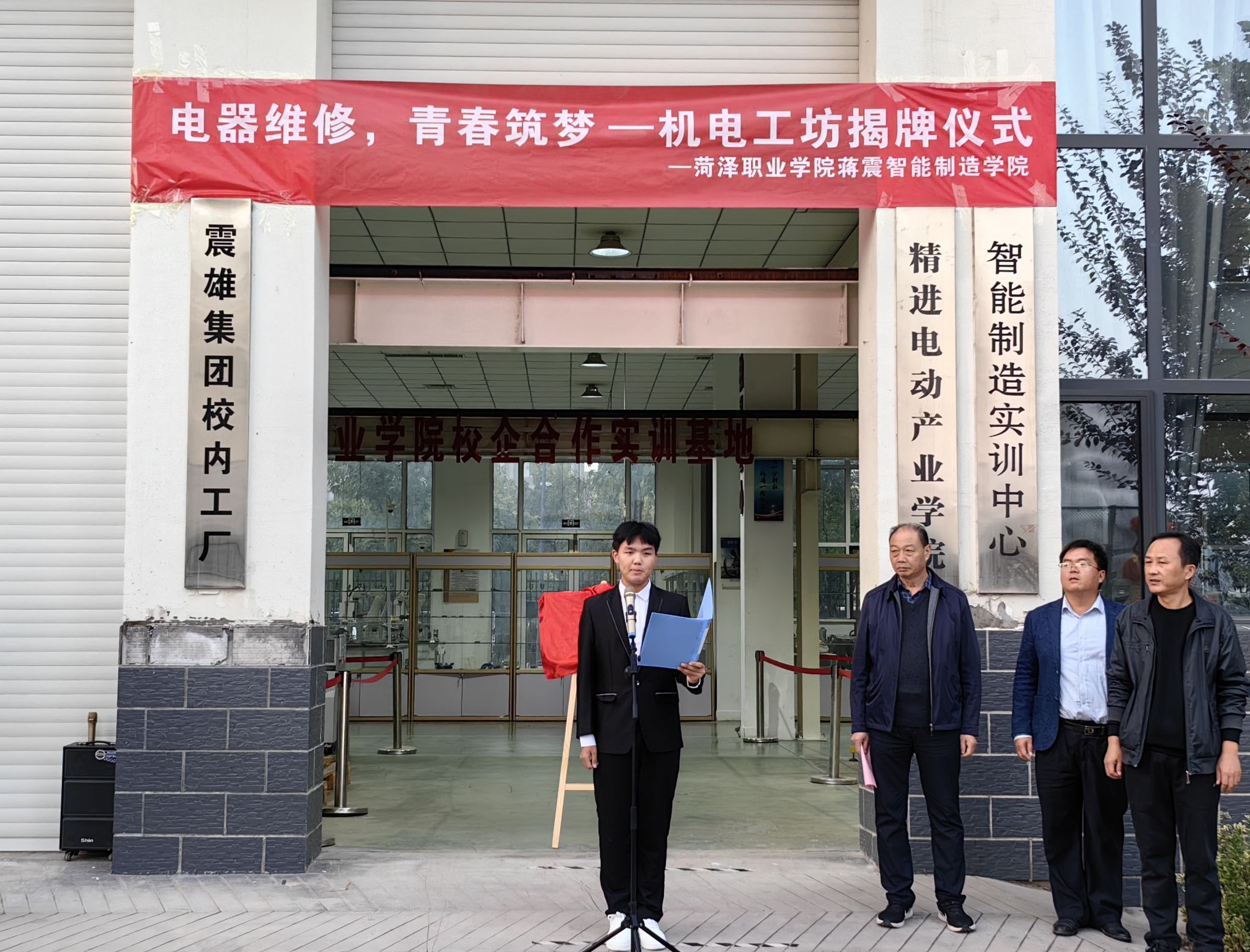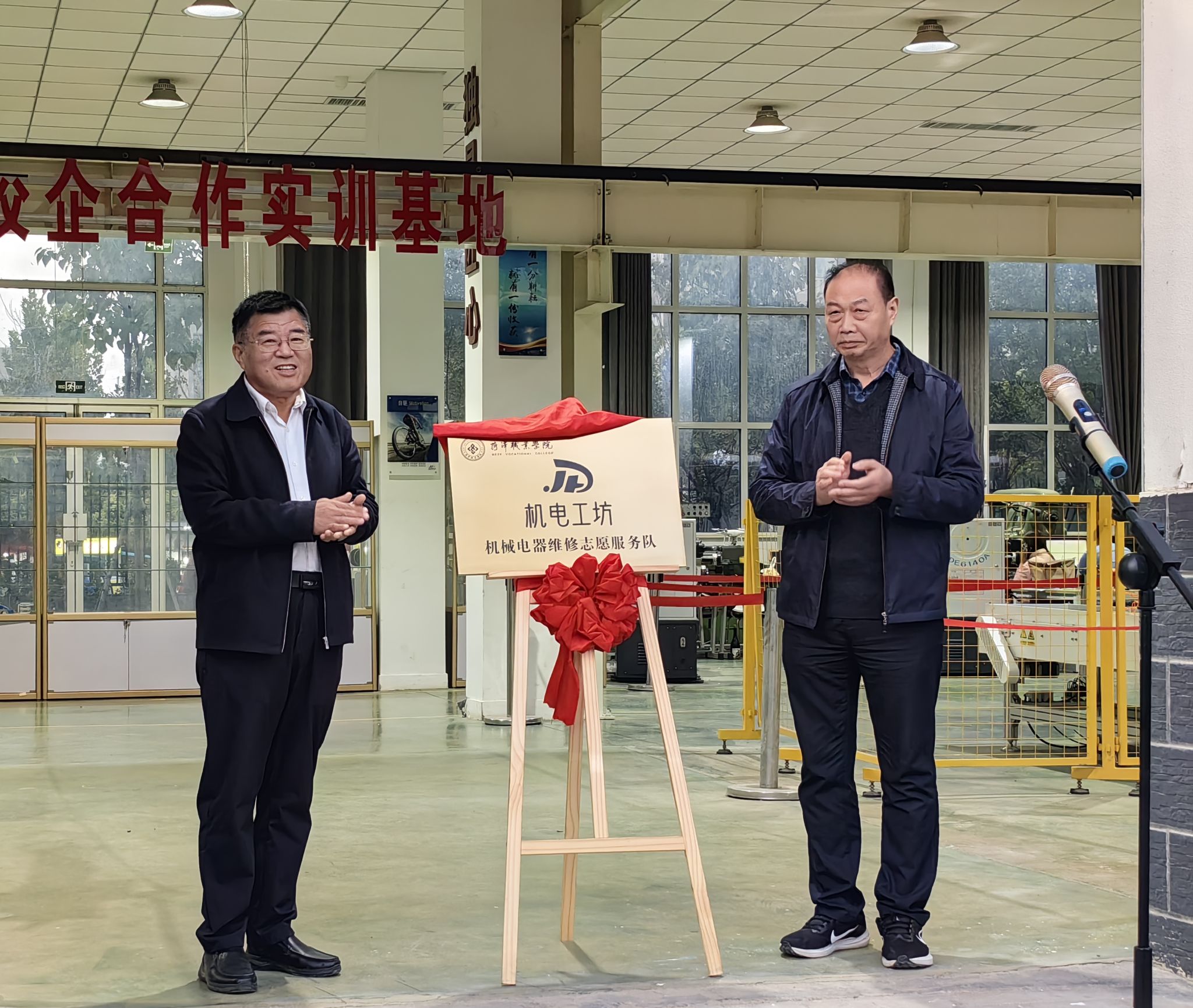 胡宪奎、王朝景共同为机电工坊揭牌。