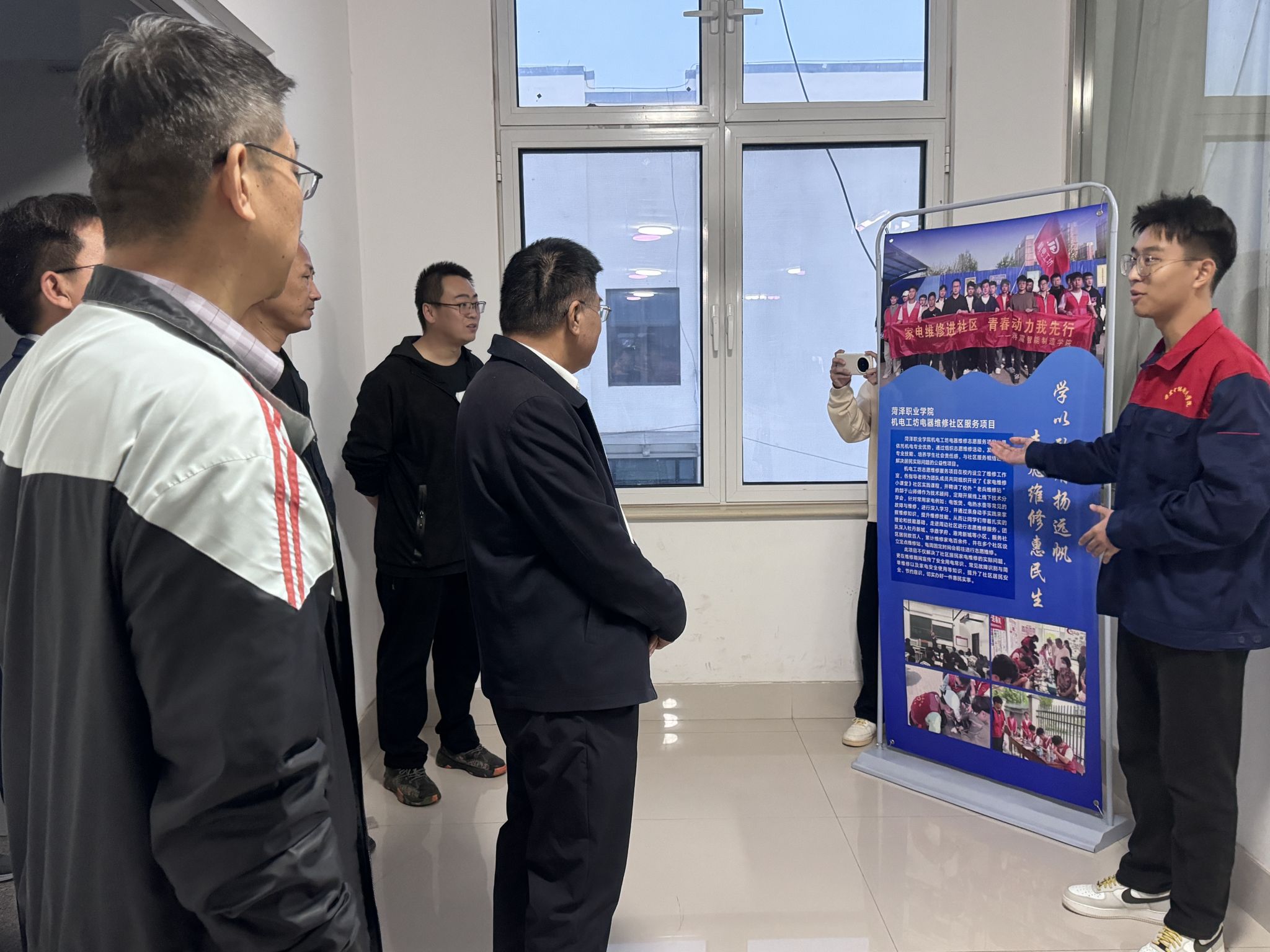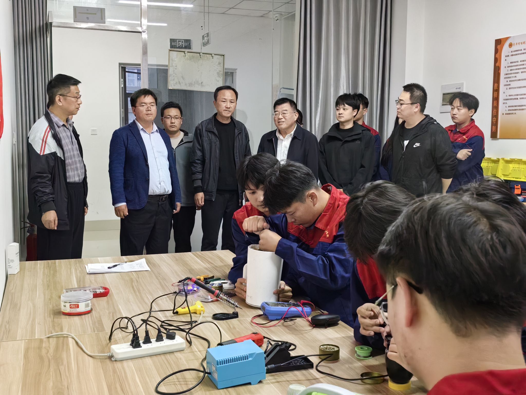 仪式结束后,邀请领导共同参观机电工坊社团活动室,了解社团的日常运作及活动开展情况。参观过程中,胡宪奎为社团今后的发展方向提出宝贵建议,他指出机电工坊是学生走向社会的第一步,同学们要从简单的电器维修出发,不断提高、精进自身的实践能力。