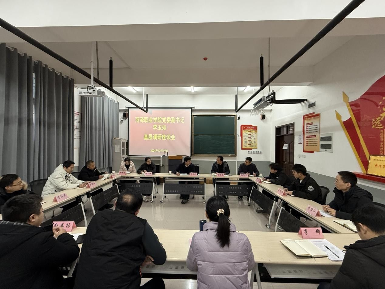 12月19日下午,校党委副书记李玉如到蒋震智能制造学院走访调研,就学院发展、师生在工作、生活和学习中遇到的问题等方面听取意见建议。蒋震智能制造学院党总支副书记李宪国,蒋震智能制造学院副院长周佩、张作川,教师代表及学生代表参加了本次座谈。