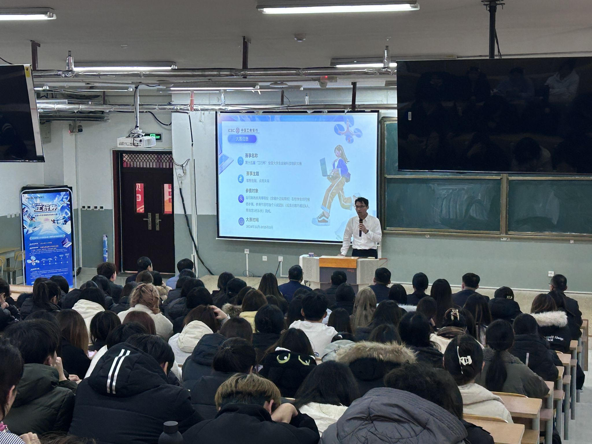 谢新尧经理对“工行杯”全国大学生金融科技创新大赛的背景、目的和赛制进行了详细介绍,鼓励同学们积极参与,将所学知识与实际应用紧密结合,展现自己的创新才华。谢经理以其专业的金融背景和丰富的实践经验,为师生们详细解读了金融科技在当前经济环境中的重要作用和发展趋势,结合实际案例,深入浅出地阐述了金融科技在银行业务中的应用与影响。据悉,“工行杯”全国大学生金融科技创新大赛由中国工商银行主办,并入选了由中国高等教育学会发布的《全国普通高校大学生竞赛分析报告》竞赛目录,是教育部白名单赛项,自2009年首届举办以来已经成功举办了十四届。