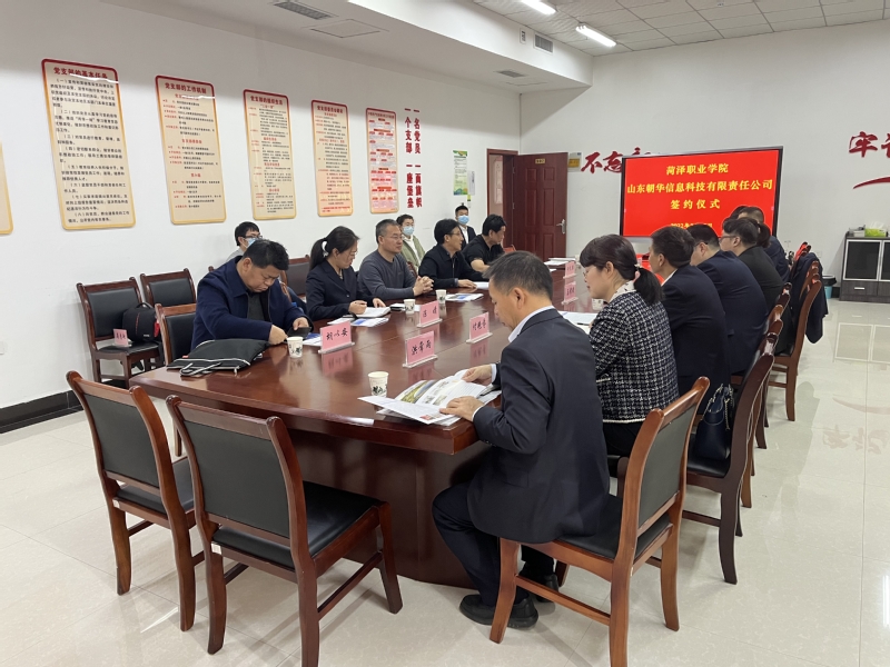 今天上午国药菏泽医药发展有限公司董事长高鸿罡、山东朝华信息科技有限责任公司总经理晁代合、中移铁通菏泽分公司总经理兼党总支书记张坤等一行13人到访我院,就校企合作订单班达成合作意向,并分别与三家公司举行签约仪式。学院副院长陈俊启主持会议,信息工程系党总支书记许先胜、校企合作处李鸿浩等参加座谈。