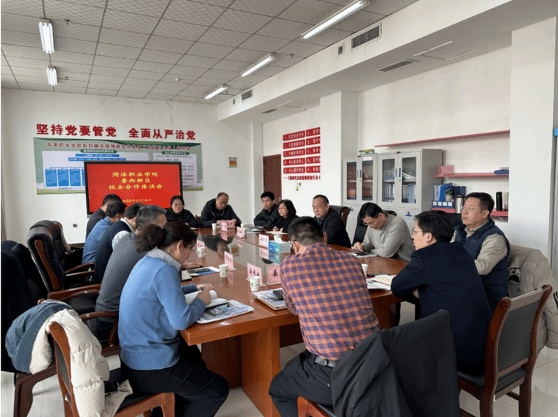 2月16日下午,在菏泽鲁西新区科技创新服务中心主任仝卫东等领导陪同下,山东中厦电子科技有限公司董事长朱金鸿,康沃动力人力资源总监李志江一行实地到访我院。永利yl23411官网副院长程凤鸣,校企合作处负责人李鸿浩,商贸物流系书记陈兆刚,机电工程系副主任张作川,信息工程系副主任胡秀娥参加了此次活动。