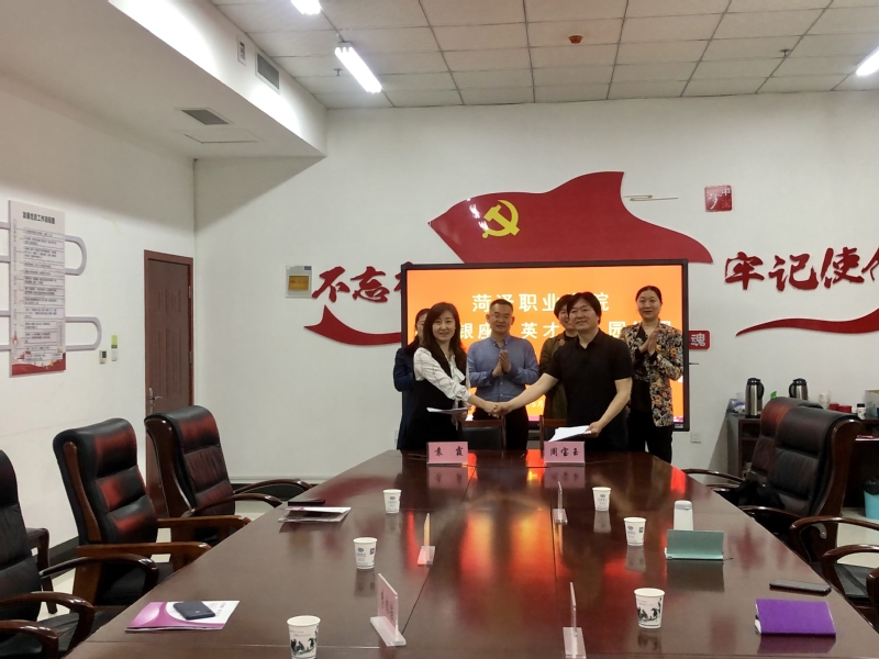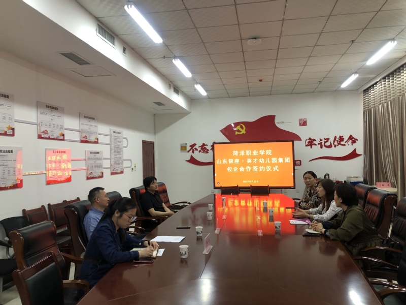5月12日上午,山东银座•英才幼儿园集团董事长袁霞和副总张丽、菏泽银座幼儿园园长刘红到访我院洽谈校企合作,并举行签约仪式,旅游管理系书记周宝玉、尹娇娇,校企合作处李鸿浩参加签约仪式。