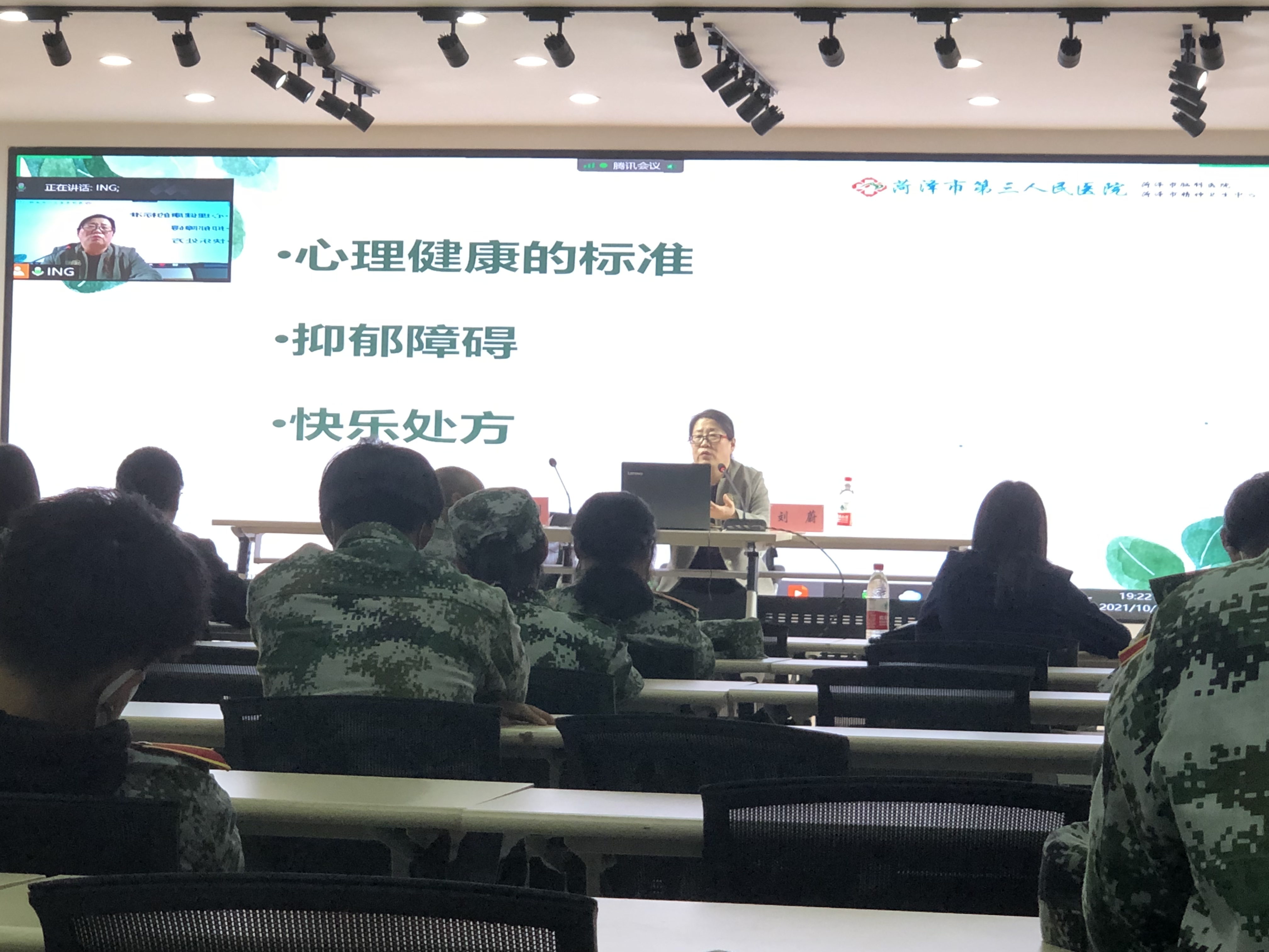 2021年10月10日为第30个世界精神卫生日,为宣传普及心理健康知识,提高学生的心理健康意识,增强学生心理调适能力,10月11日,永利官网学生工作处特邀菏泽市第三人民医院业务副院长、精神科主任医师刘蔚为全体学生开展心理健康教育讲座。讲座采取视频会议方式进行,全校师生线上、线下同步收看了讲座。讲座由学工办主任陈兆刚主持。