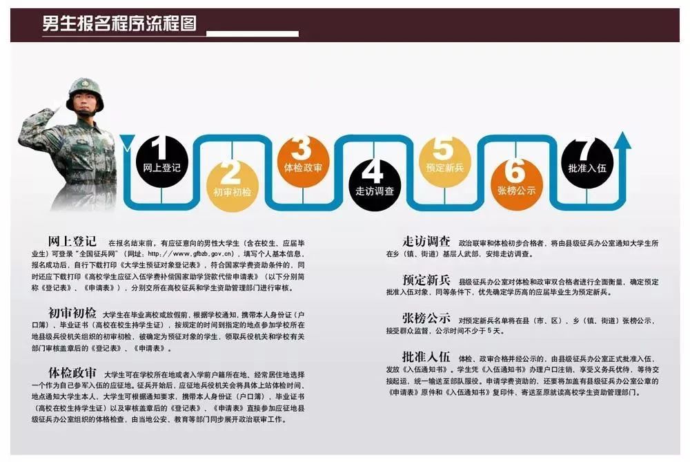 报名前:在学院官网—学生工作处—阅读“参军入伍手续办理指南(必读)”。