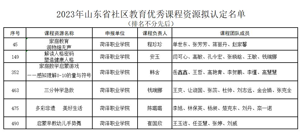 近日,山东省教育厅公示了2023年山东省继续教育数字化共享课程遴选结果和2023年度山东省社区教育优秀课程资源遴选结果。永利yl23411官网1项数字化课程入选2023年山东省继续教育数字化共享课精品课程,6项社区课程入选2023年度山东省社区教育优秀课程资源。...