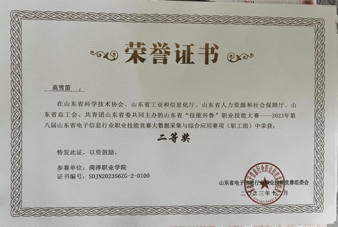 本专业师生积极参加山东省职业院校教学能力大赛、山东省“技能兴鲁”职业技能大赛等各类竞赛并获奖10余项,展现卓越实力。未来将持续努力,不断优化与提升,以追求更加辉煌的成就,为学生的就业和升学提供良好的先机。